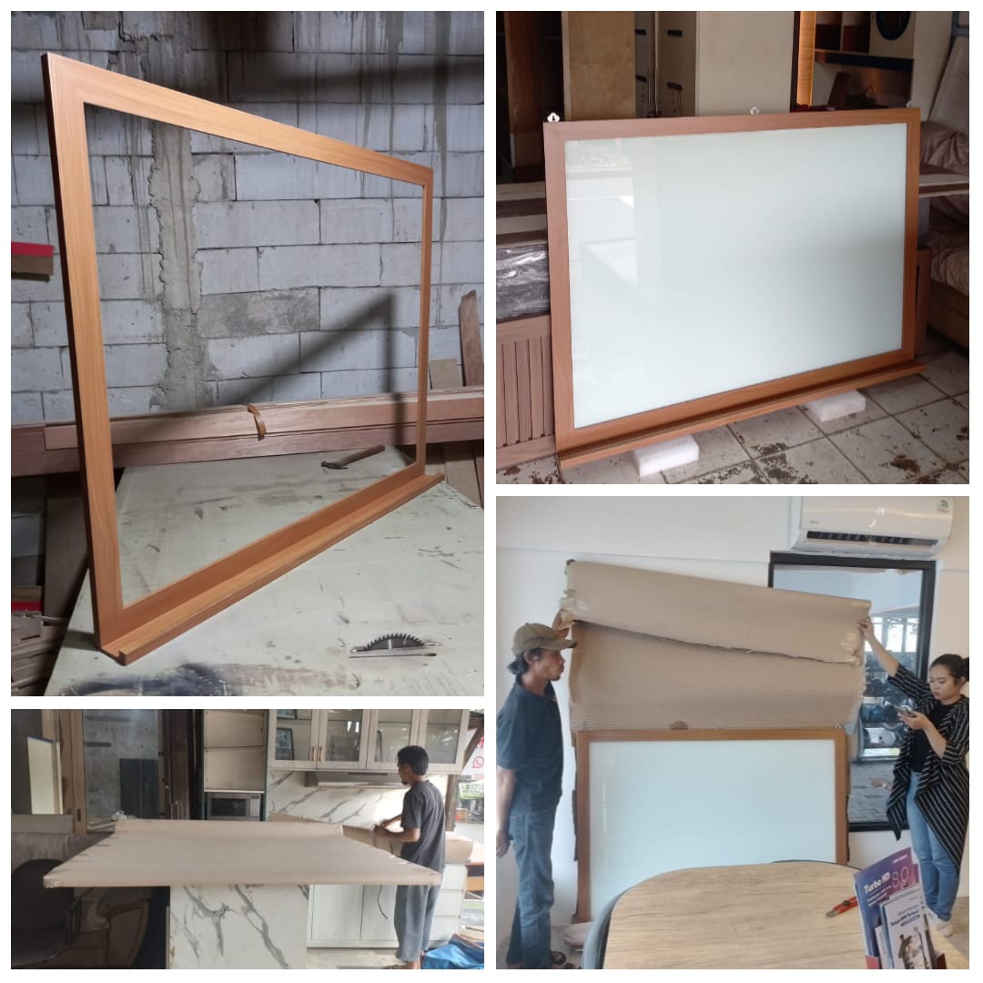 Rp 2.650.000Spesifikasi : Kaca 5mm Stiker Hitam Pen gantung Tempat penghapus aluminium Dapat dipasang pada tembok beton, partisi gypsum & triplek. Bisa Custom Ukuran