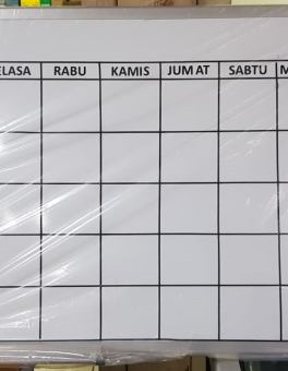 Produk Custom Ukuran sesuai yang di inginkan Bahan papan tulis board Magnetik Frame/ List : Aluminium Siku : PVC Desain Tabel tebuat dari sticker, Full printing