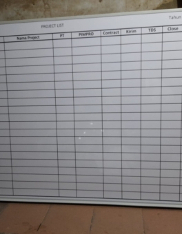 *Harga Hubungi CSPapan Data Monitoring Perusahaan Produk Custom Ukuran sesuai yang di inginkan Bahan papan tulis board Magnetik Frame/ List : Aluminium Siku : PVC Desain Tabel tebuat dari sticker, Full printing