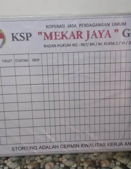 *Harga Hubungi CSPapan Data Koperasi Produk Custom Ukuran sesuai yang di inginkan Bahan papan tulis board Magnetik Frame/ List : Aluminium Siku : PVC Desain Tabel tebuat dari sticker, Full printing