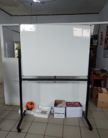 Whiteboard Hanako 120X180 2 Muka+kaki Board : Magnetic List : Aluminium Kaki : Besi Holo Finising : Powder Coating Hitam