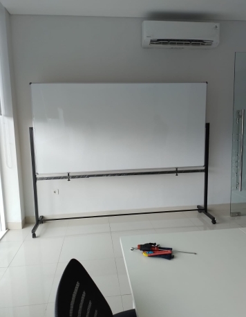Rp 850.000Papan Tulis Sekolah Whiteboard Hanako 120X240 2 Muka+kaki Double Face, Standing Board : Magnetic List : Aluminium Kaki : Besi Holo Finising : Powder Coating Hitam