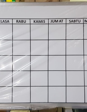 *Harga Hubungi CSProduk Custom Ukuran sesuai yang di inginkan Bahan papan tulis board Magnetik Frame/ List : Aluminium Siku : PVC Desain Tabel tebuat dari sticker, Full printing