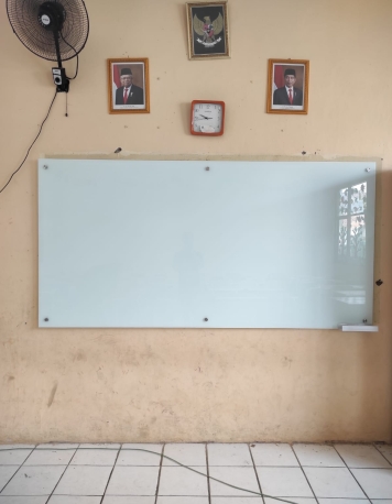 Rp 1.400.000Spesifikasi : Kaca 5mm Stiker putih susu Pen gantung Tempat penghapus aluminium Dapat dipasang pada tembok beton, partisi gypsum & triplek.